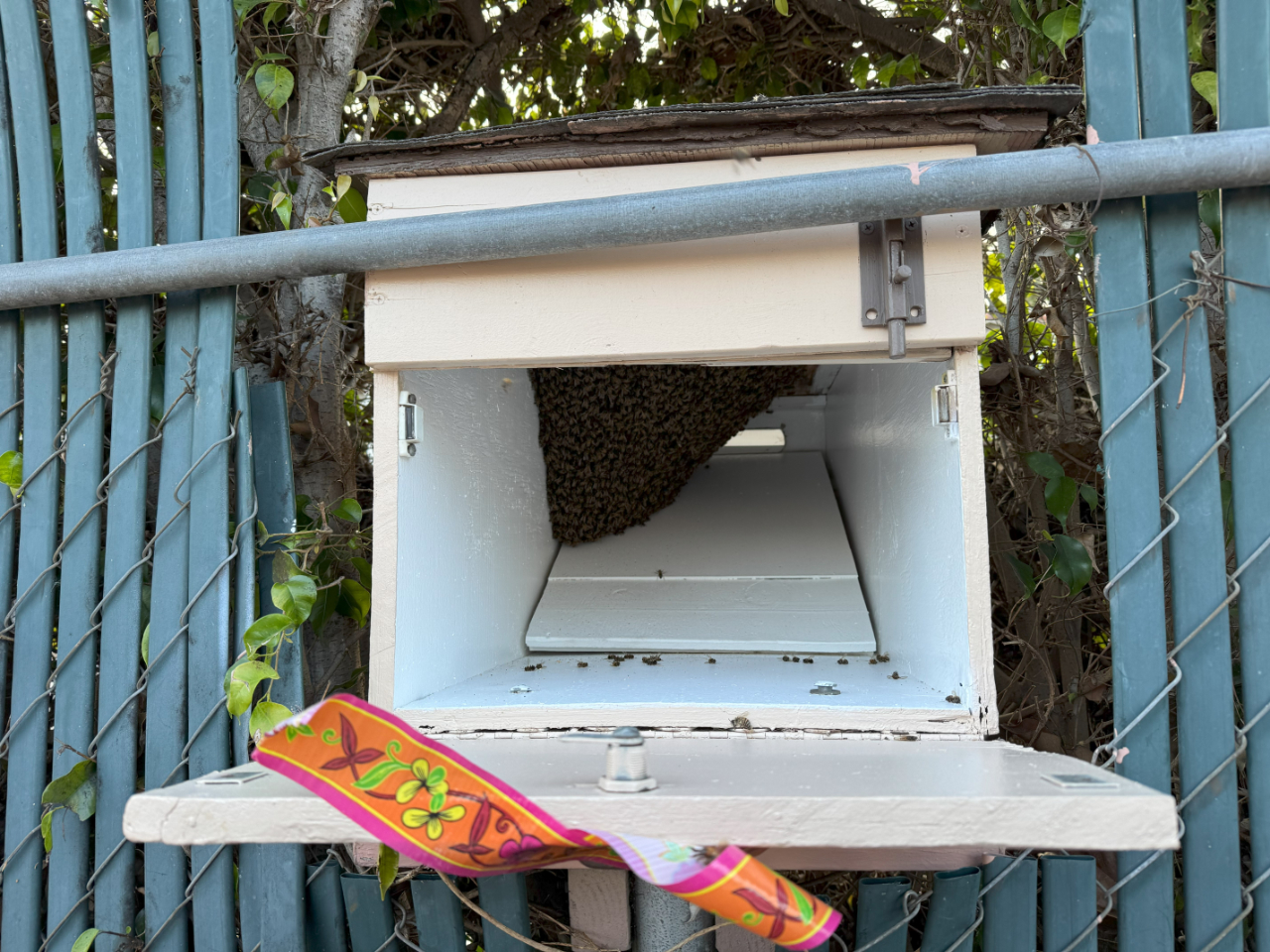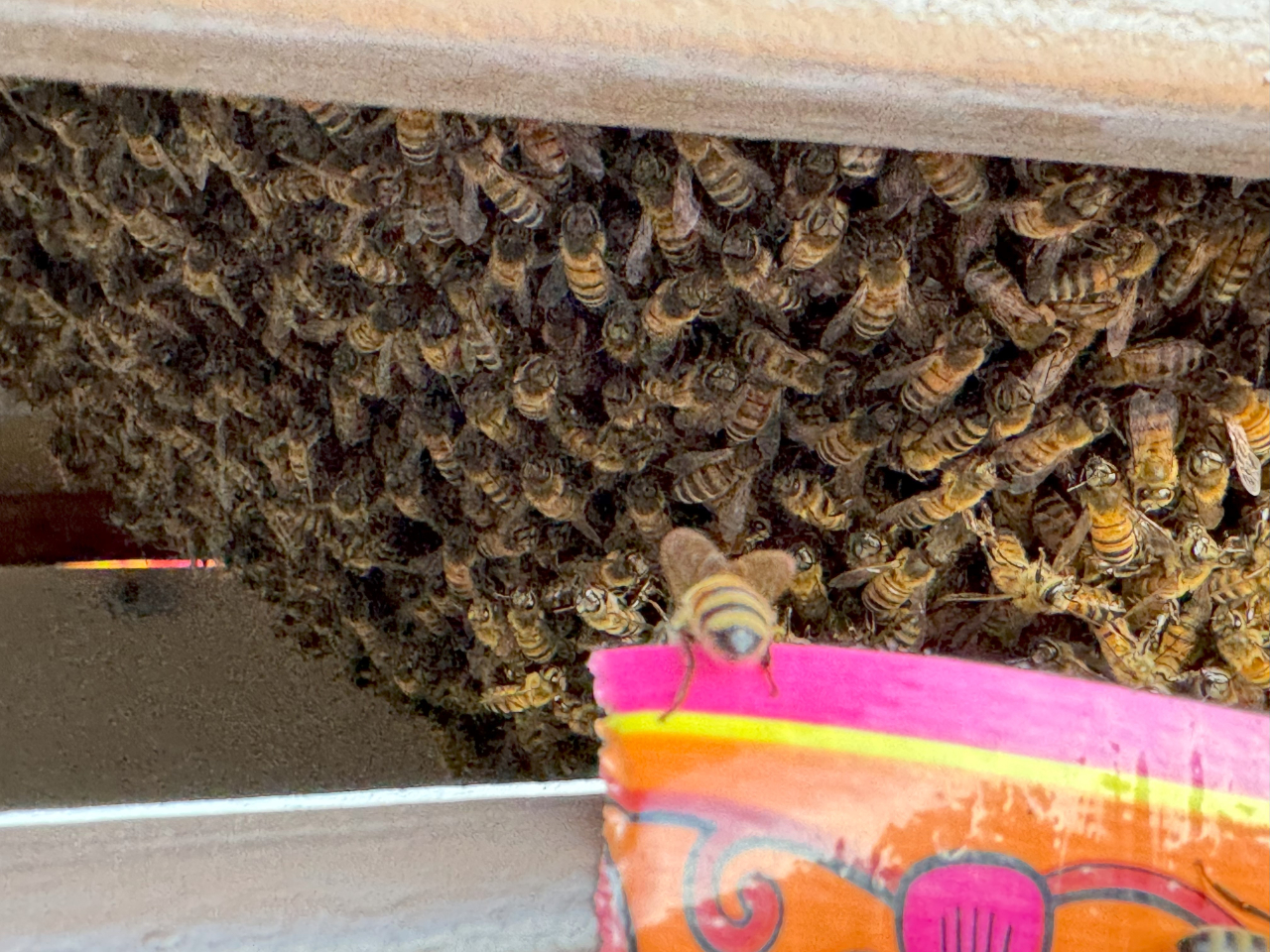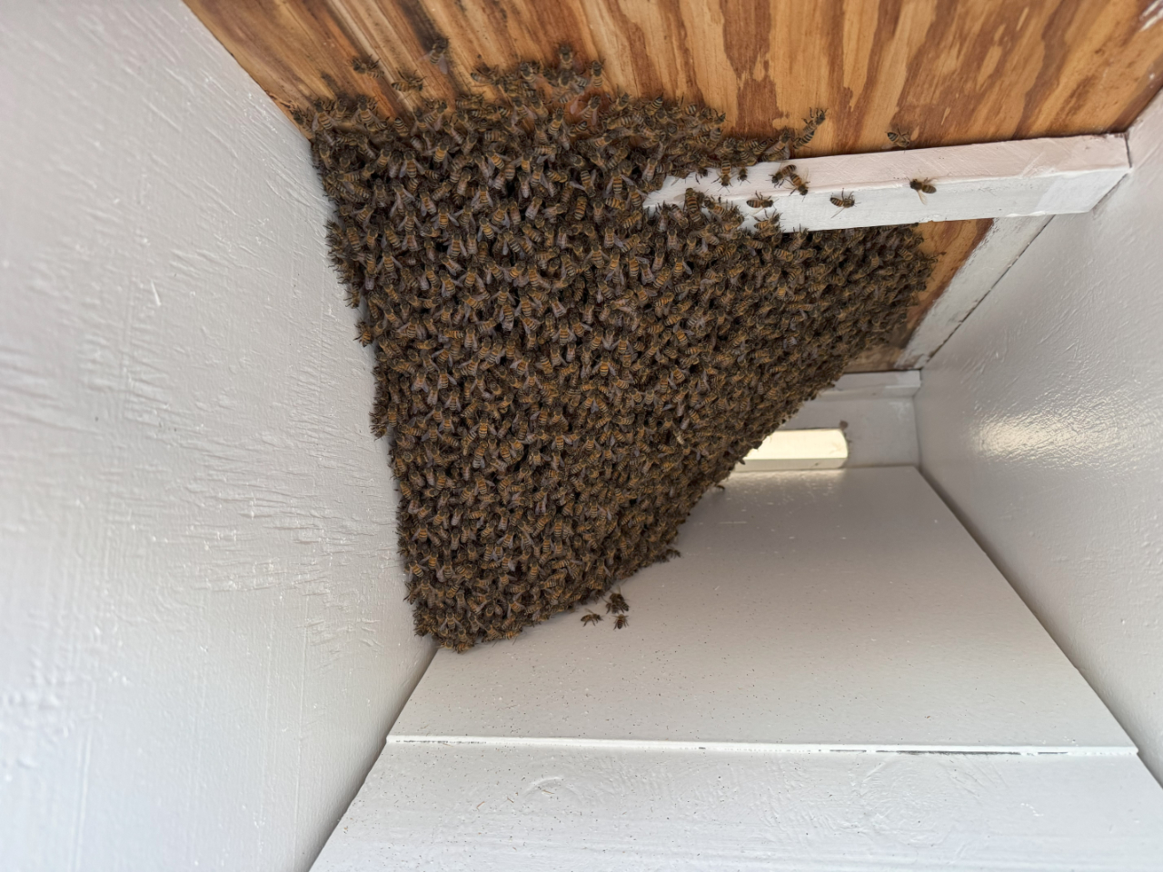 In the afternoon, Bee Best removed this 5lb bee swarm from the mail box with our bee vacuum. Because of it’s large size and their protective nature, the bees were a fairly aggressive. There were some stragglers but they went away after the majority of the swarm was removed.